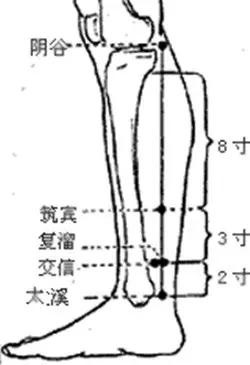 築賓穴位於三陰交穴上方約2寸的地方,小腿肚內側,屬足少陰腎經,按摩刺激該穴可提高性慾。
